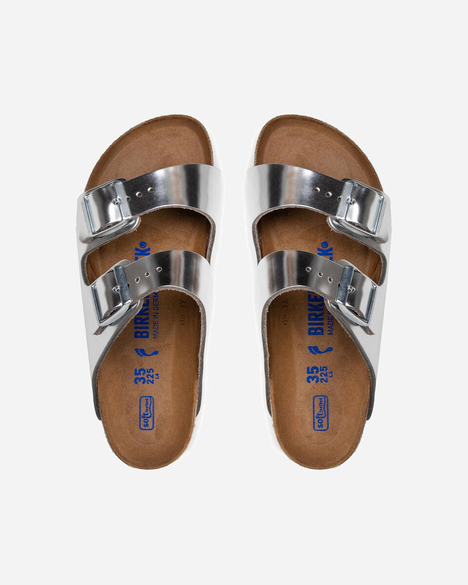 Birkenstock Arizona è un classico che conquista uomini e donne con il suo design intramontabile. Questi sandali hanno un rivestimento riflettente che fa brillare, così nessun outfit passerà inosservato. Grazie al cuscinetto aggiuntivo in schiuma, il plantare garantisce ancora più comfort e si prende cura del piede durante tutta la giornata. La tomaia è realizzata in morbida pelle naturale di alta qualità.